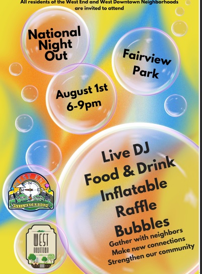 With the high temps, we will meet at Casanova Pizza. Come early, have dinner. Mention to the wait staff or manager that you’re with the West End Neighborhood.